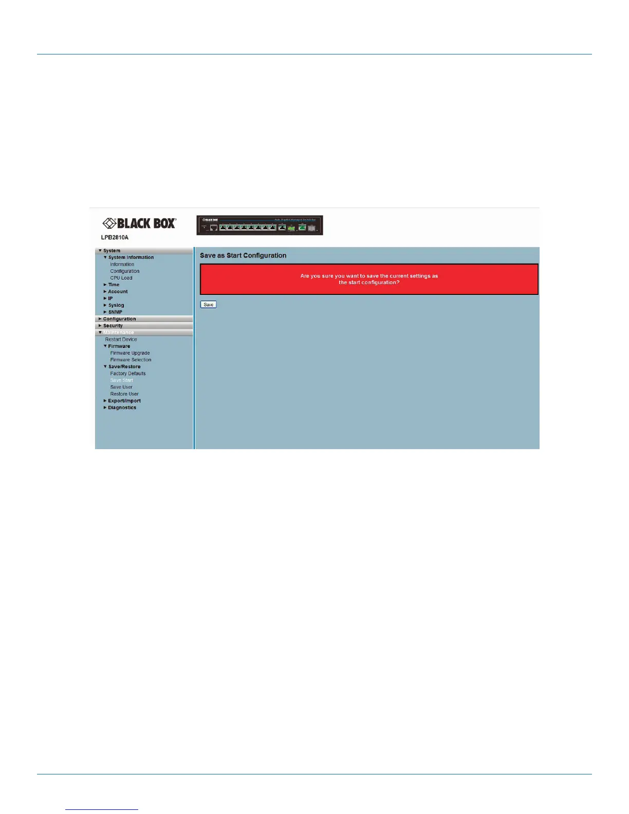 This section describes how to save the Switch Start configuration. Any current configuration files will be saved as XML format.