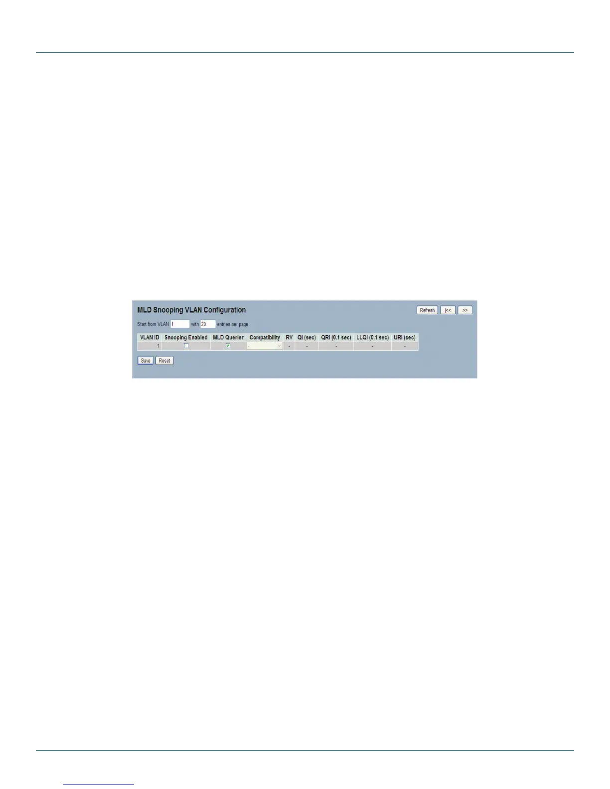 1. Click Configuration, MLD Snooping, VLAN Configuration.
