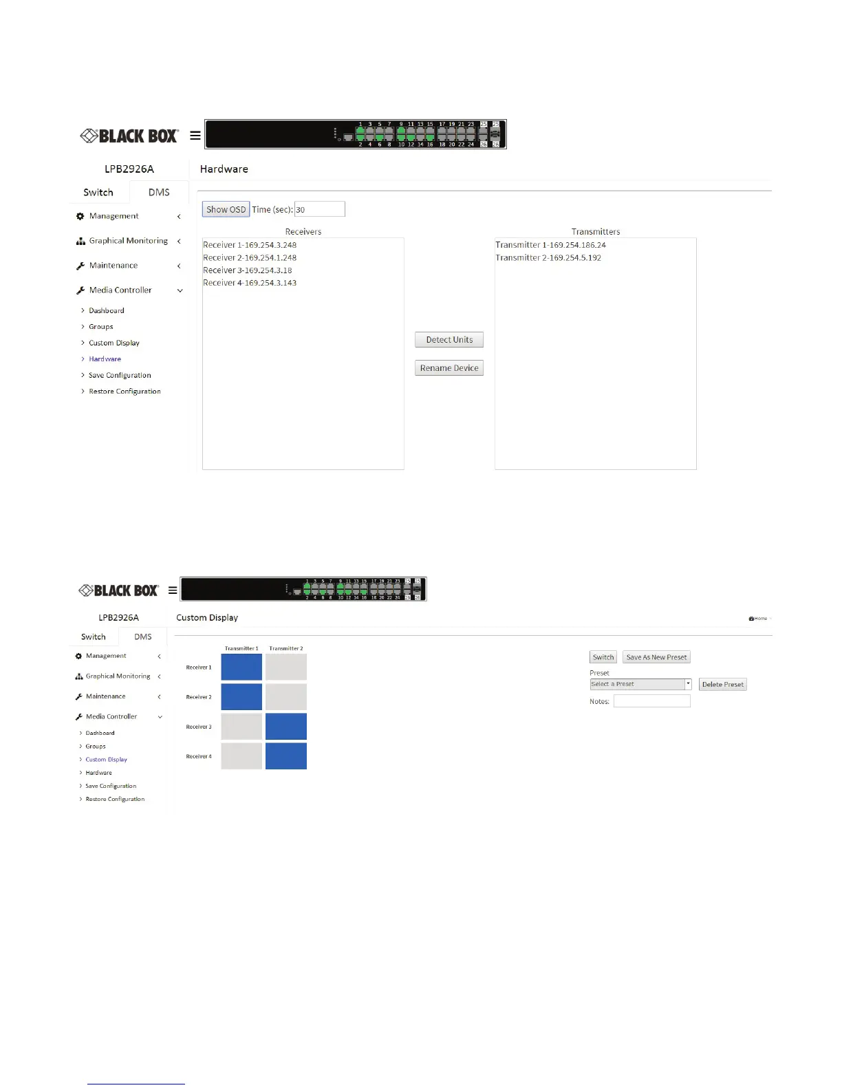 The OSD display will show the IP address of the Media Cento on the aached screen for the Receivers to easily idenfy which screen