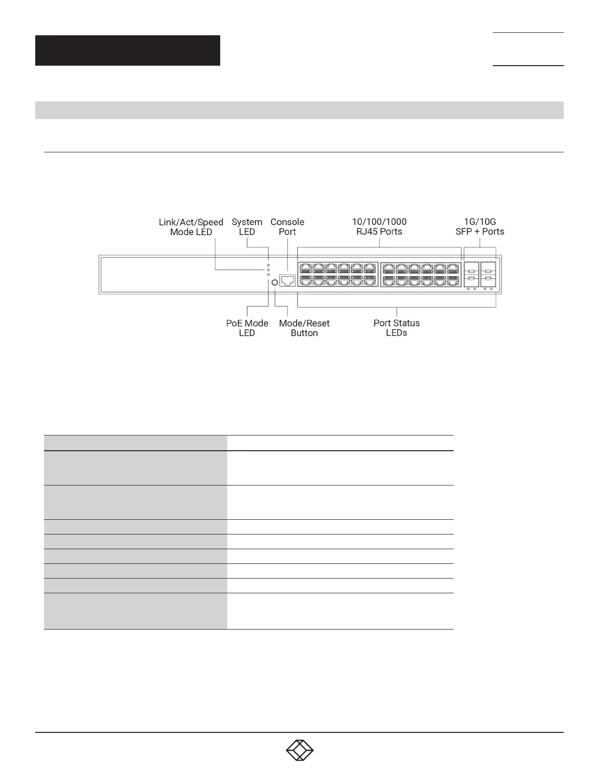 (1) PoE Mode LED Lights when the port is using Power over Ethernet (PoE)