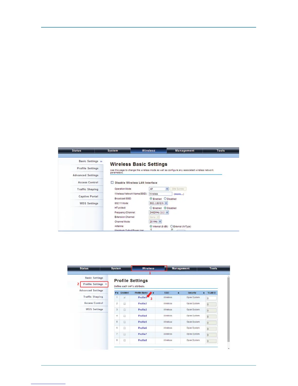 2. If security is required, open Wireless —> Profile Setting and enter “VAP Profile