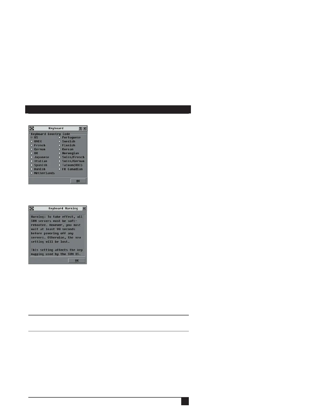 3. Select a country code and click OK. A Keyboard Warning dialog box appears.