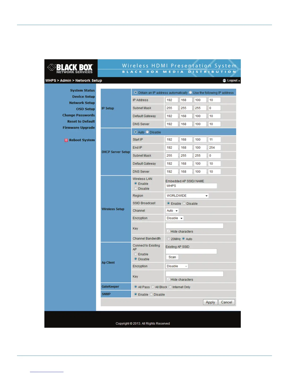 Black Box Wireless HDMI Presentation System (WHPS) - Network Setup