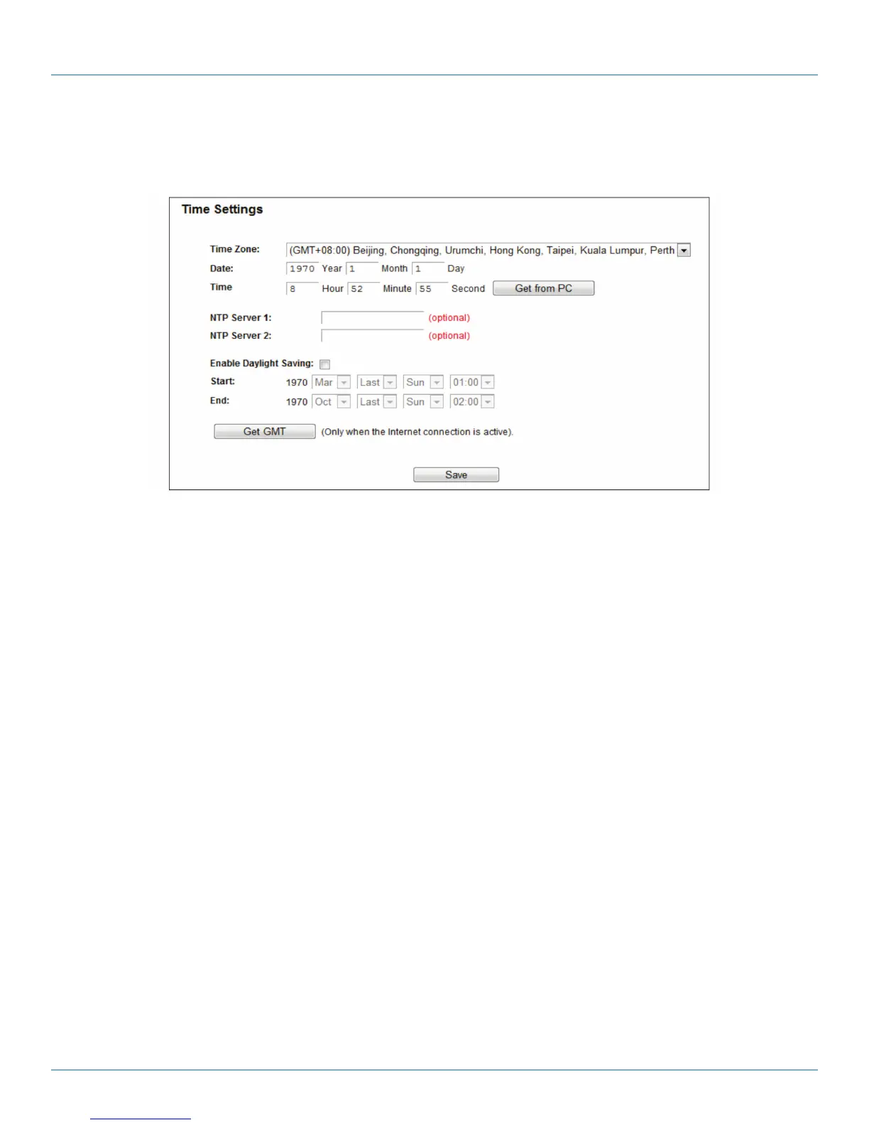 3. Click the Get GMT button to get system time from Internet if you are connected to the Internet.
