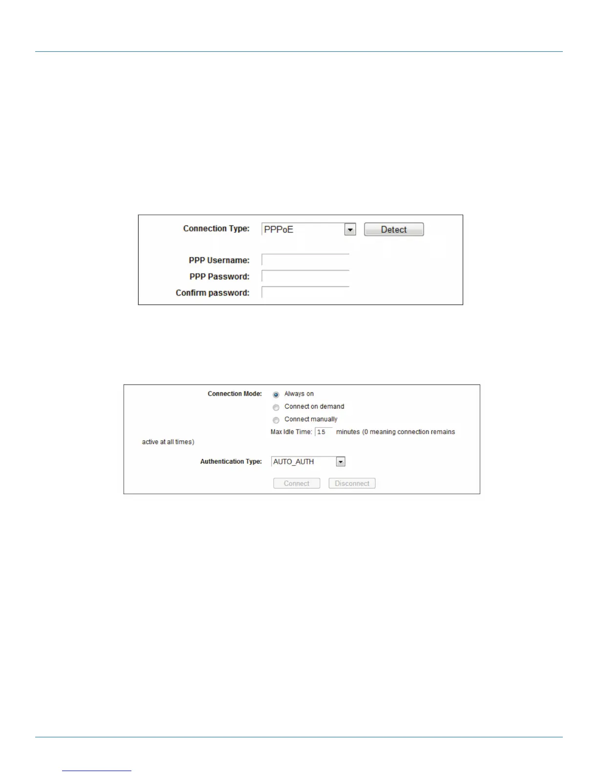 page, select “PPPoE” for the WAN Connection Type. Type the user name in the “Username” field and password in the