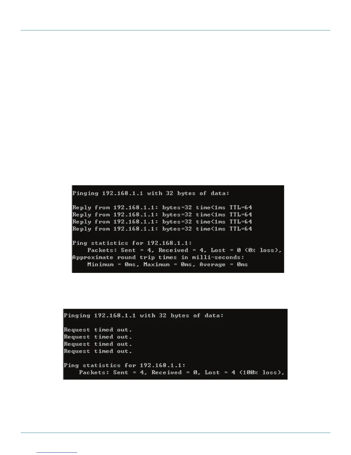 Open a command prompt, type ping 192.168.1.1, and then press Enter.