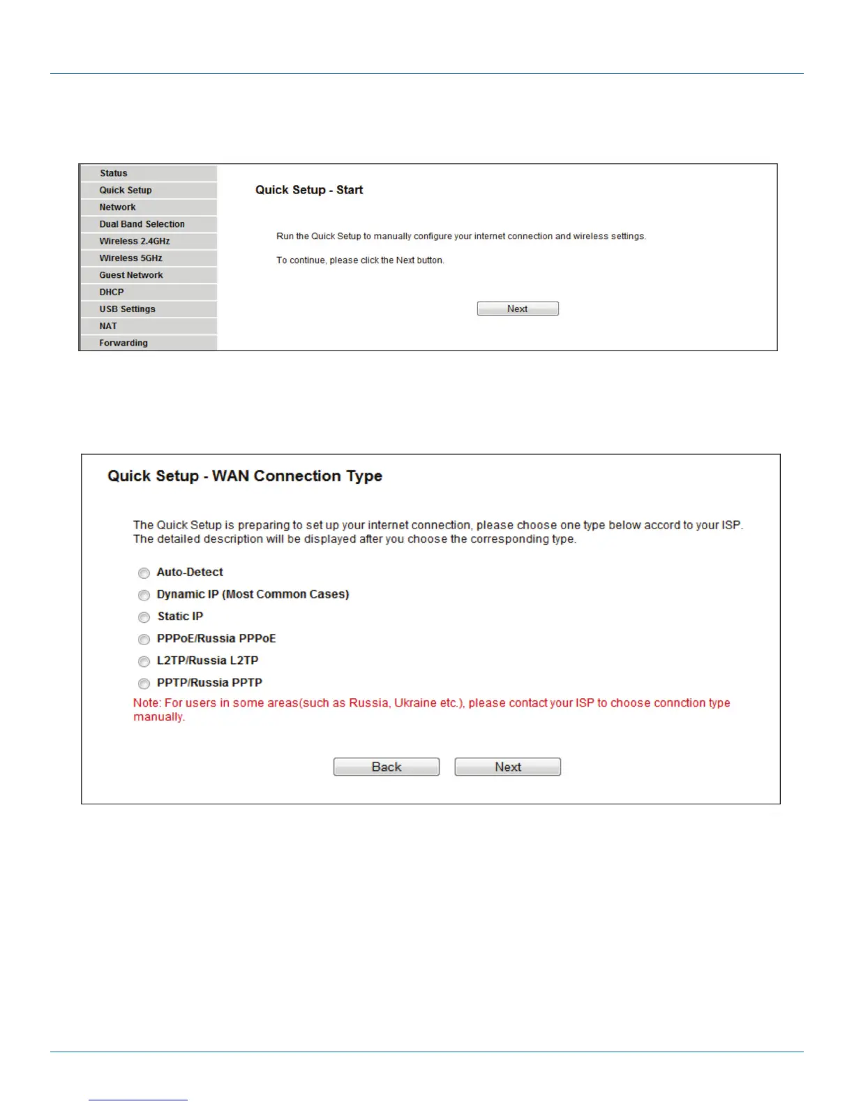 2. After successful login, the Quick Setup page will appear for you to quickly configure your router.