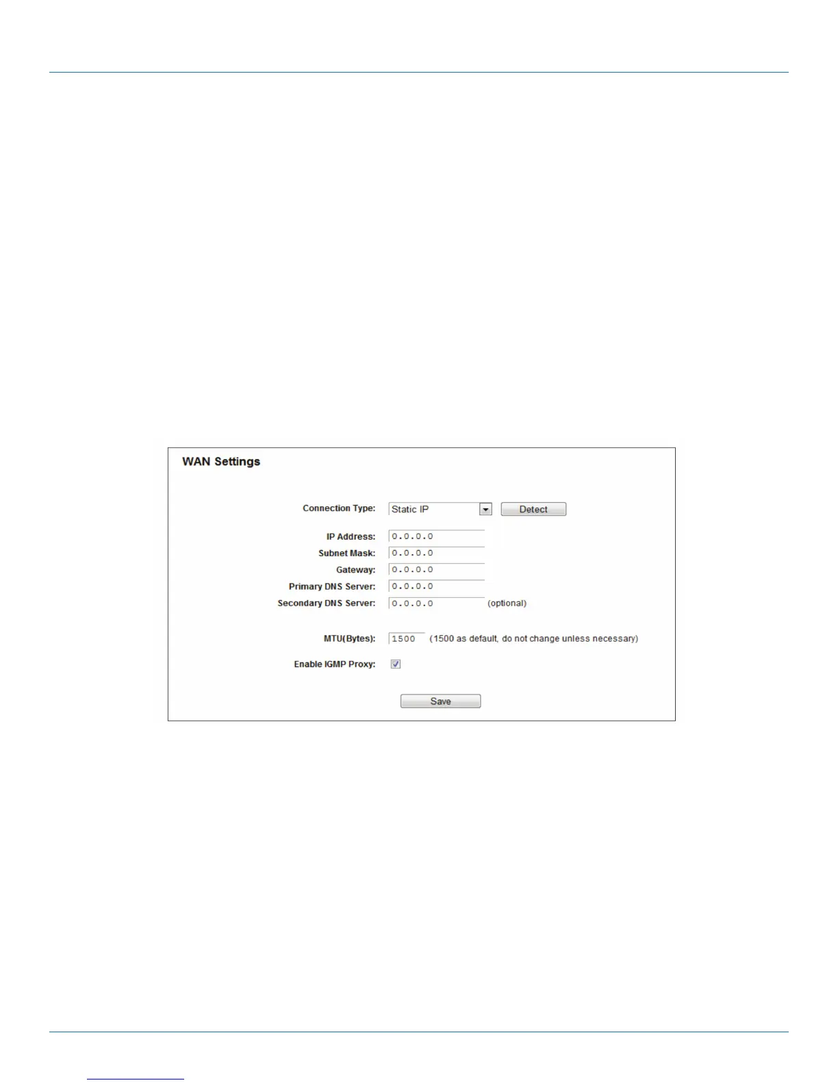 • Subnet Mask—Enter the subnet Mask in dotted-decimal notation provided by your ISP; usually it is 255.255.255.0.