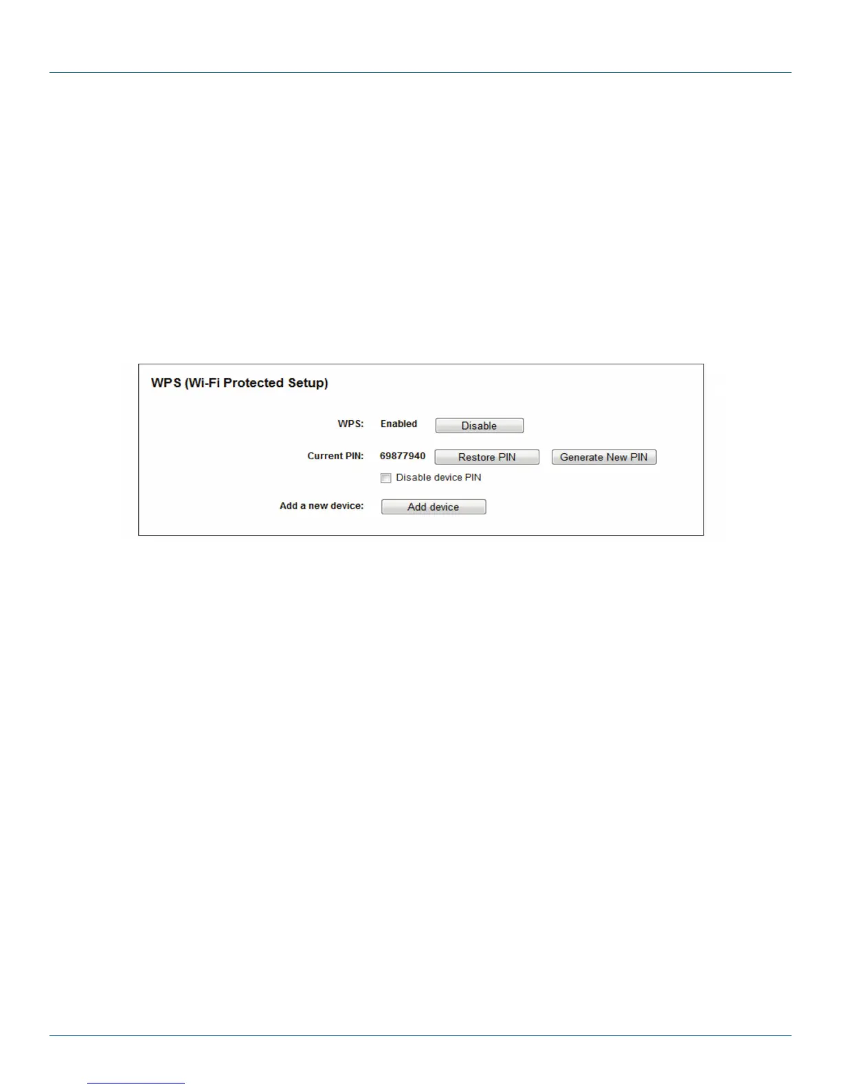 • Current PIN—The current value of the router‘s PIN is displayed here. The default PIN of the router is printed on the label.