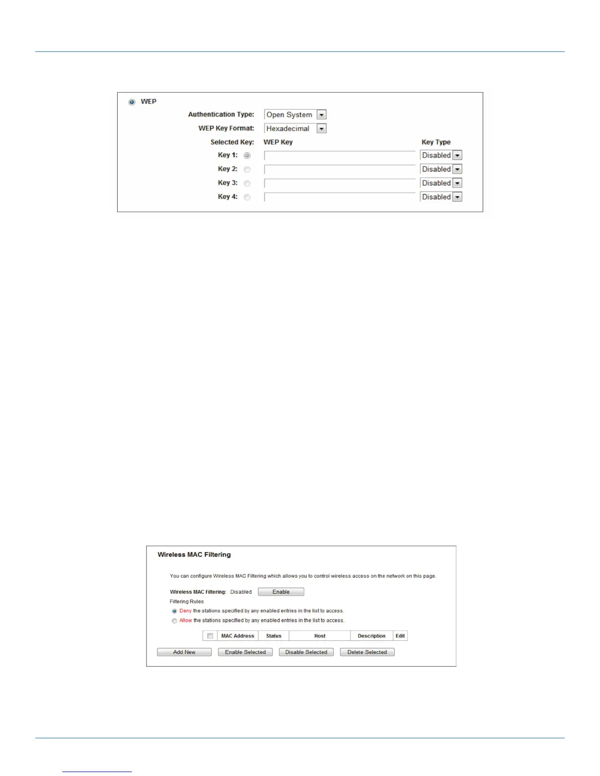 To filter wireless users by MAC Address, click Enable. The default setting is Disabled.