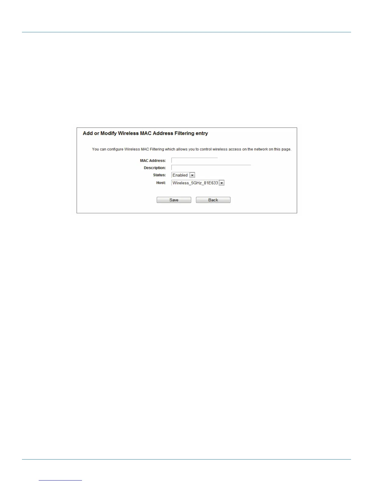 Wireless MAC Address Filtering list by following these steps: