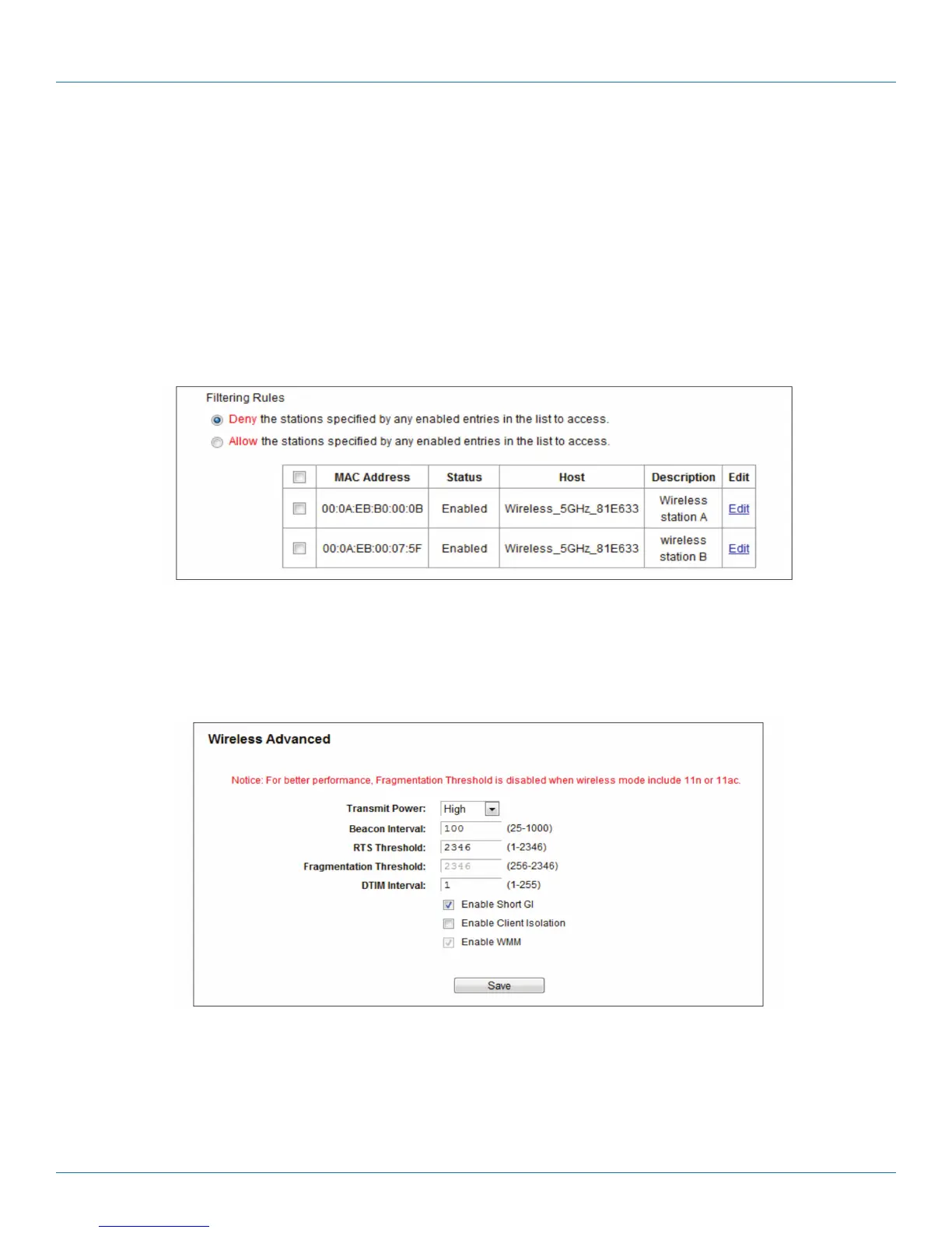 • Beacon Interval—Enter a value between 20–1000 milliseconds for Beacon Interval here. The beacons are the packets sent by the