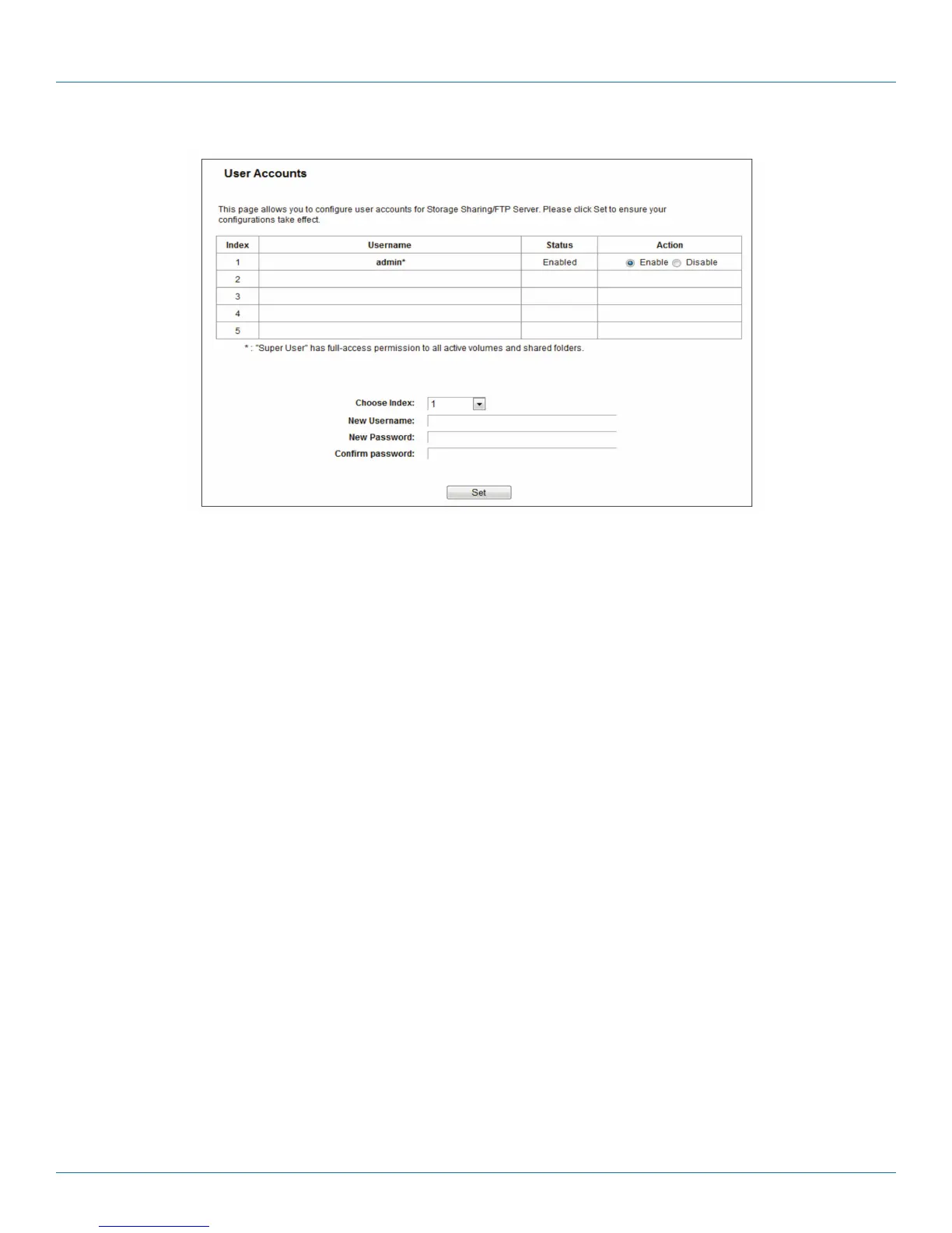 • New Username—Type the user name that you want to give access to the USB drive. The user name must be composed of