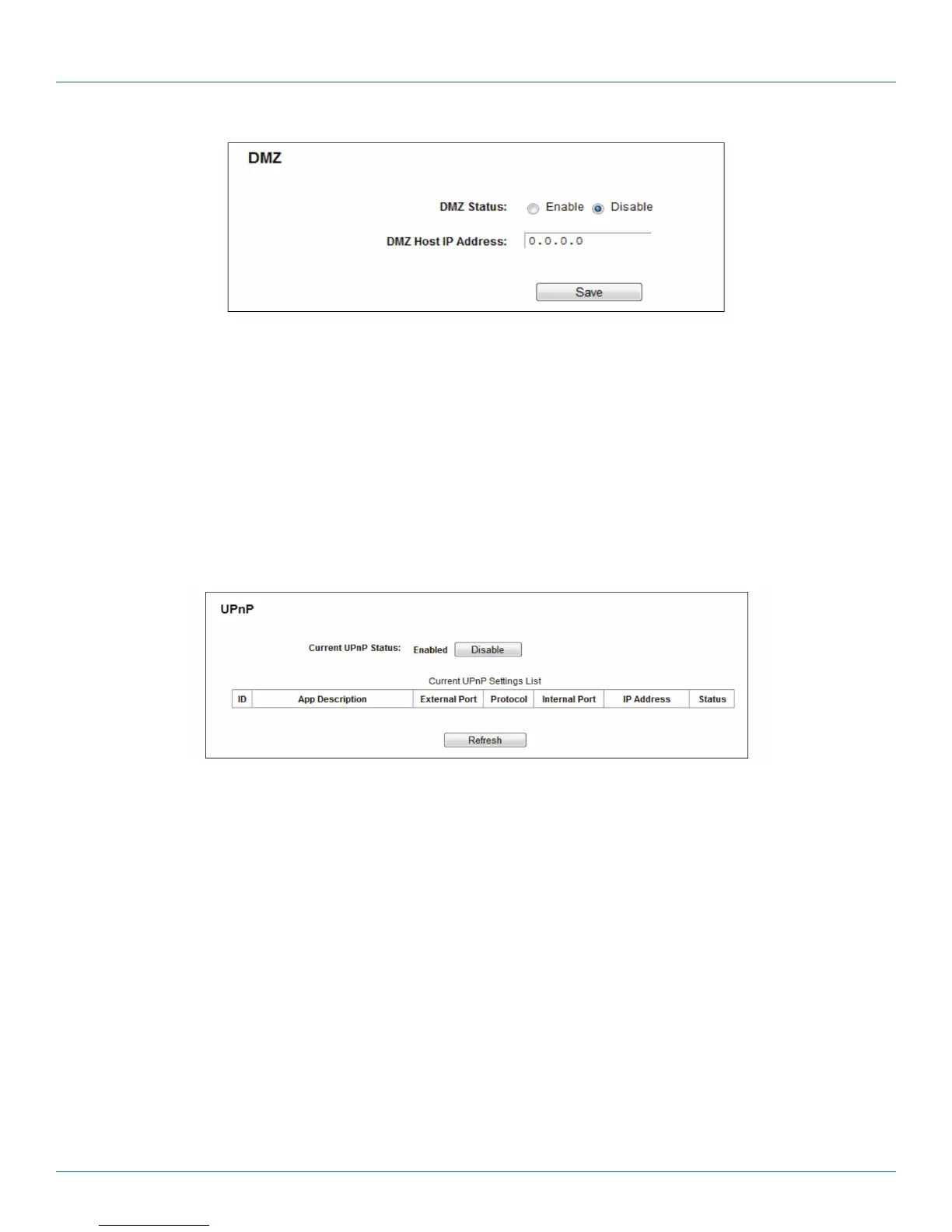 • Current UPnP Settings List—This table displays the current UPnP information.