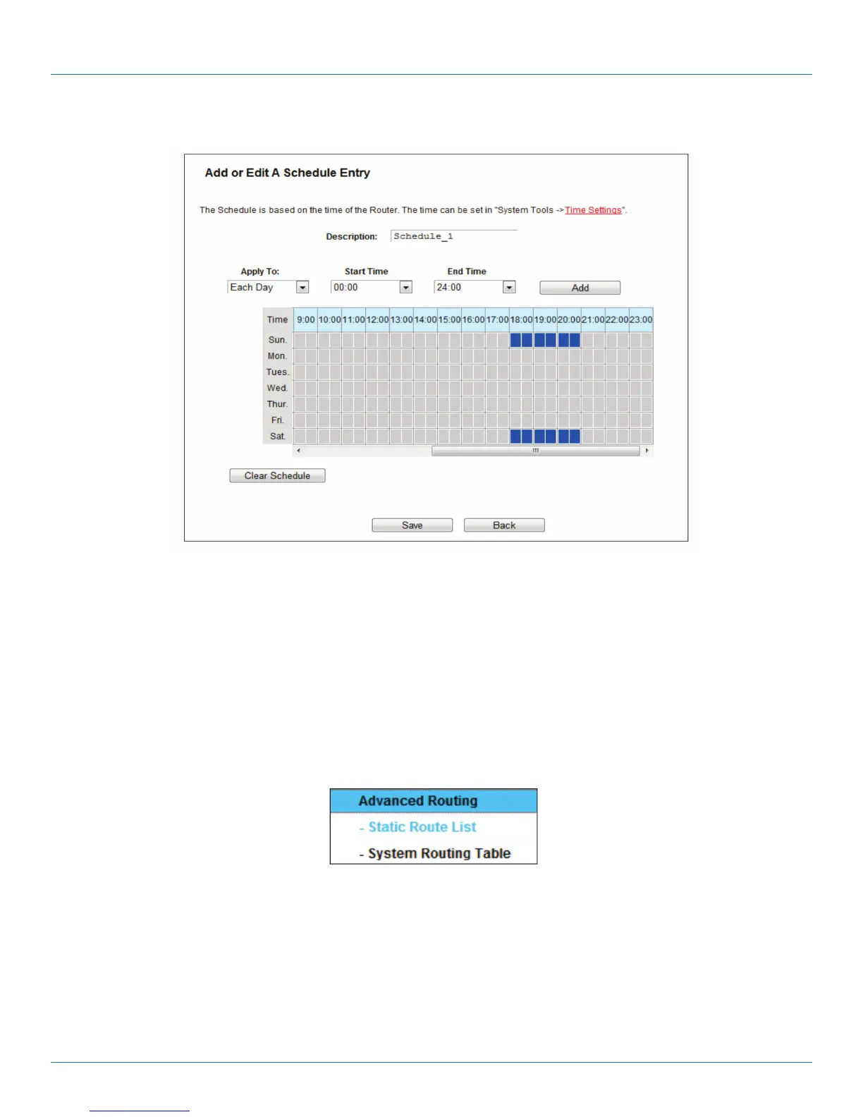 There are two submenus under the Advanced Routing menu: Static Route List and System Routing Table. Click either of them,