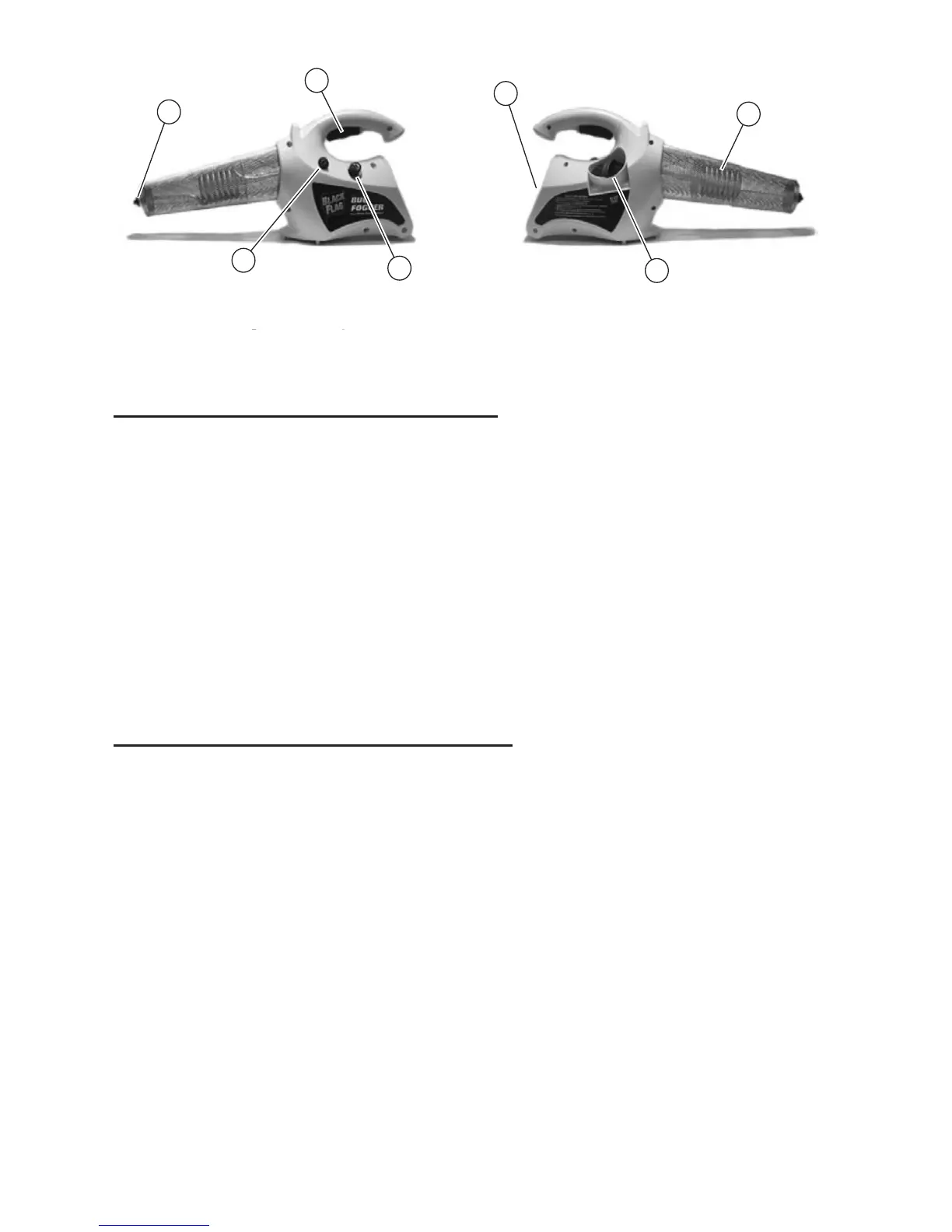 • El fumigador tiene un recipiente de insecticida (D) grande con pico de carga.