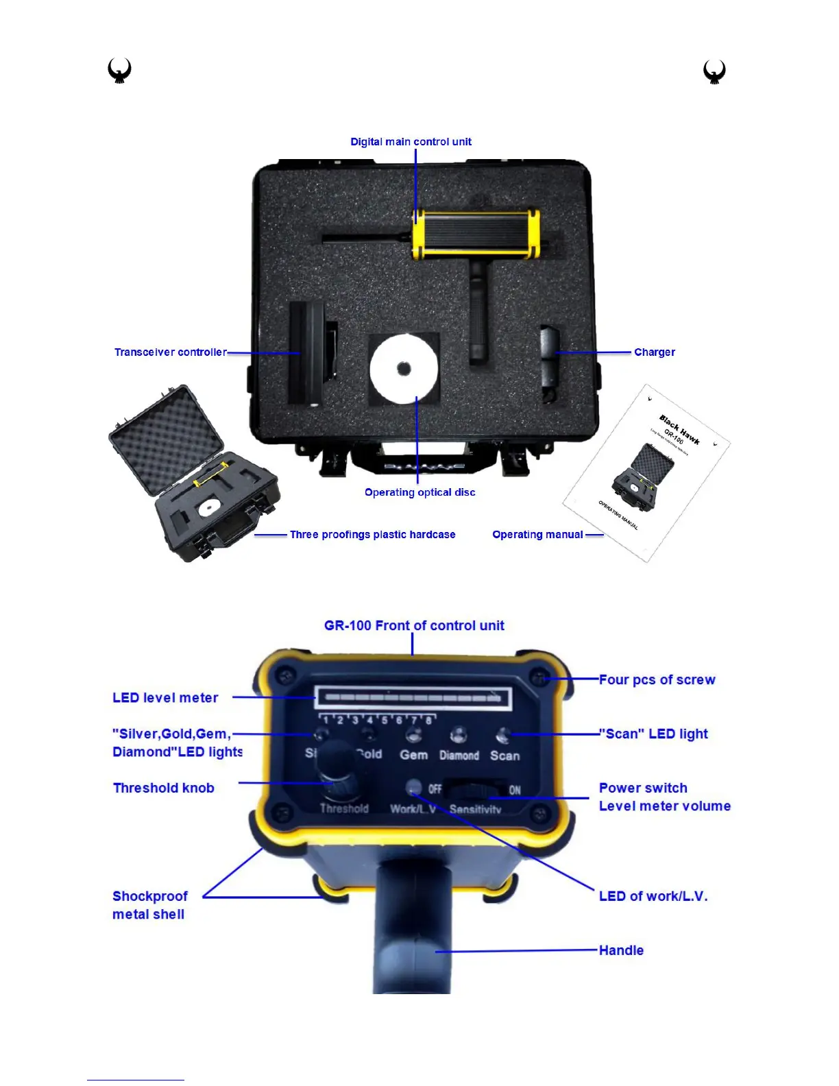 Black Hawk DR-100 - PARTS OF GR-100 DETECTOR; GR-100 CONTROL BUTTONS AND EXPLANATIONS