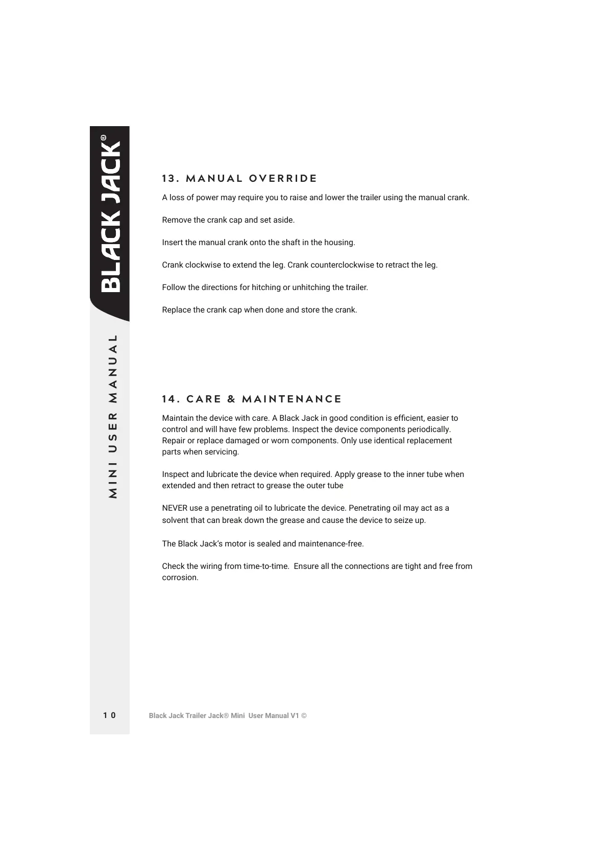 Black Jack Trailer Jack® Mini User Manual V1 ©