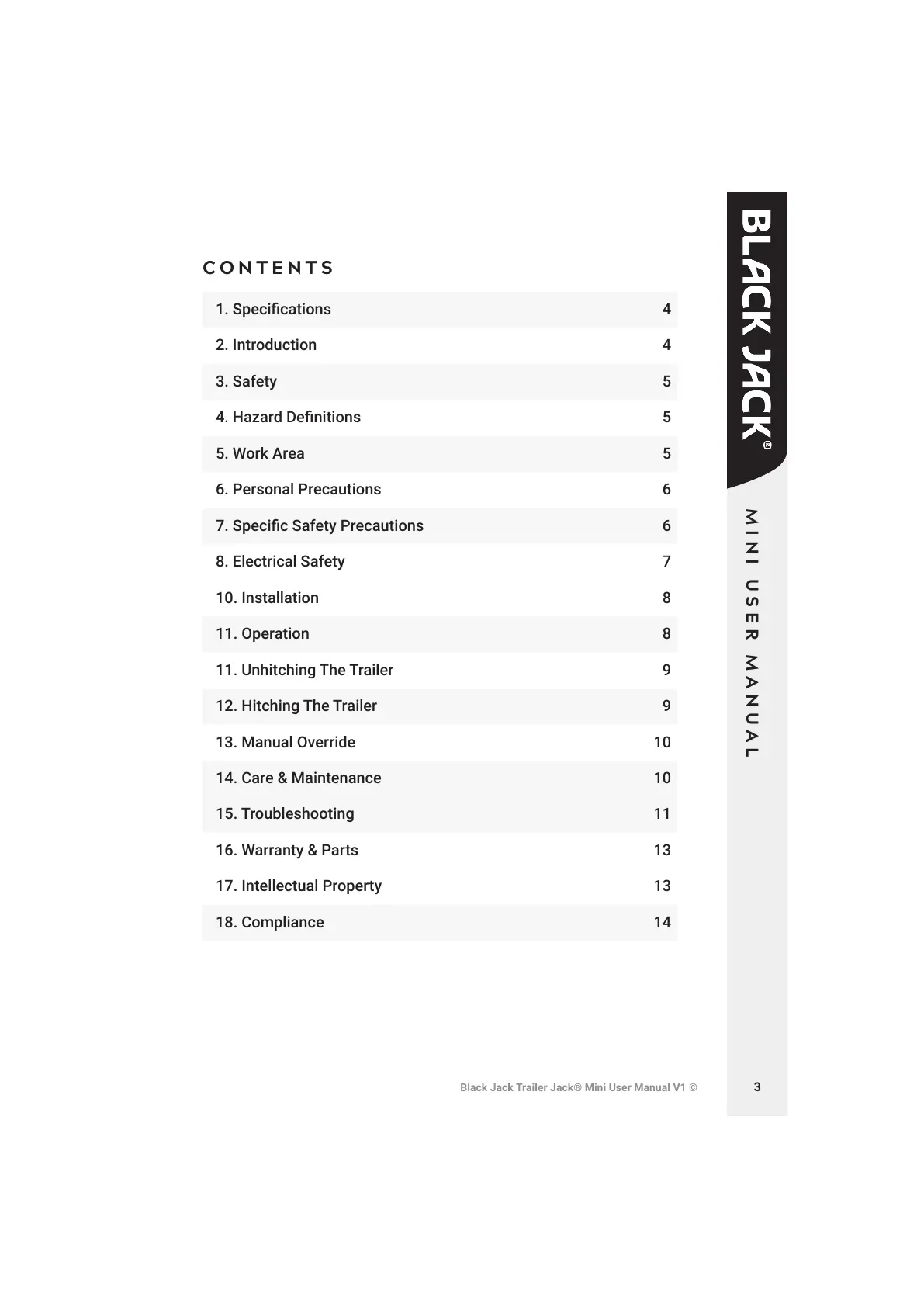 Black Jack Trailer Jack® Mini User Manual V1 ©
