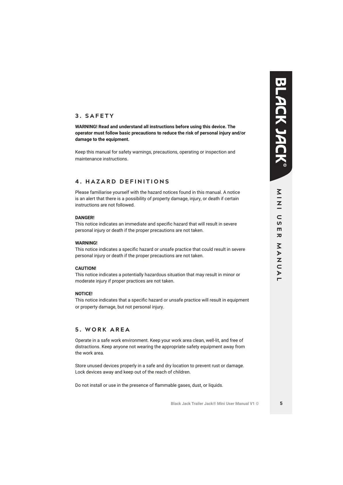 Black Jack Trailer Jack® Mini User Manual V1 ©