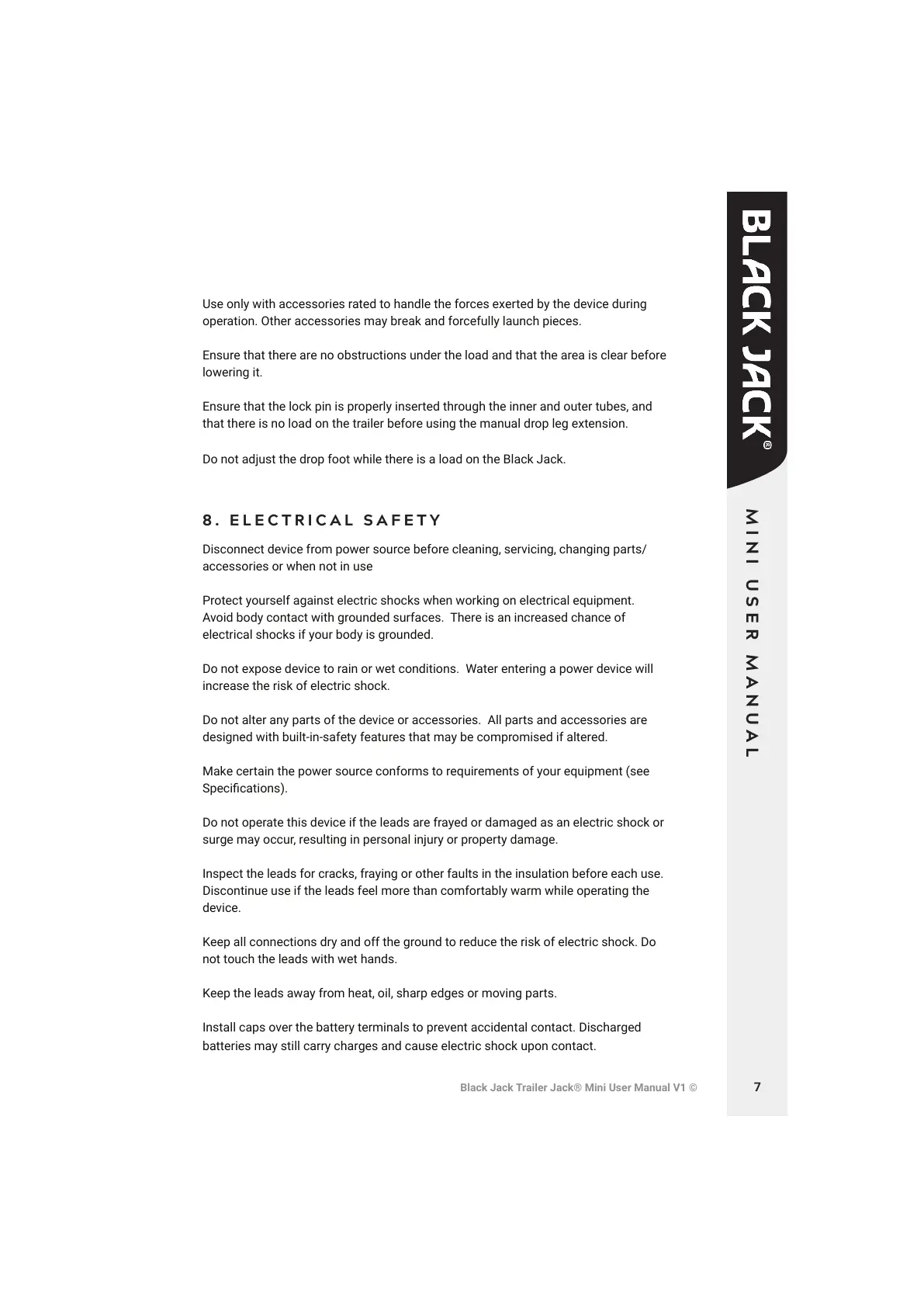 Black Jack Trailer Jack® Mini User Manual V1 ©