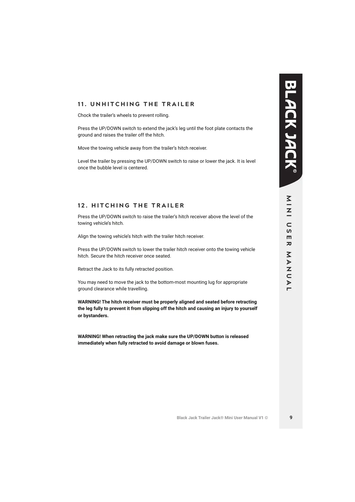 Black Jack Trailer Jack® Mini User Manual V1 ©