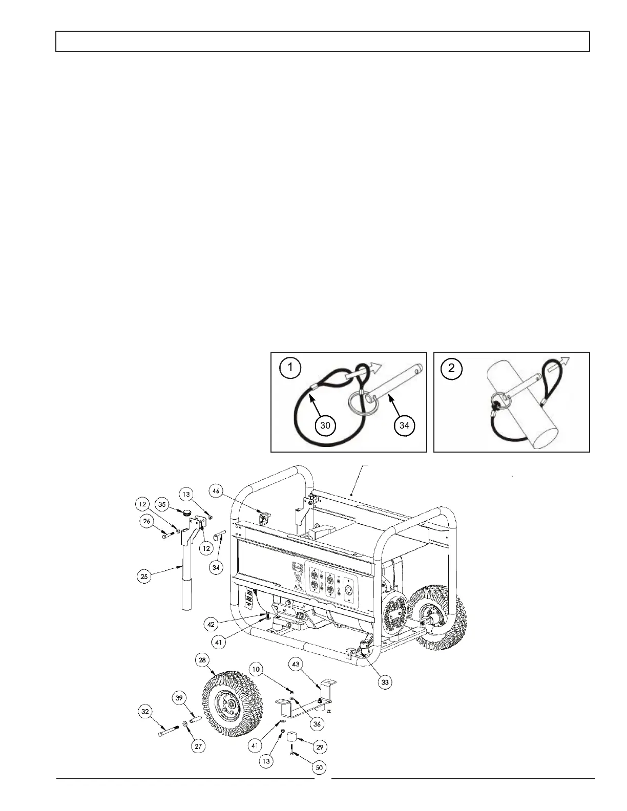 4. Enler l’écrou à frein élastique de 3/8 po (article 33) sur le boulon et serrer de façon à bien xer la roue sur la transporteur.