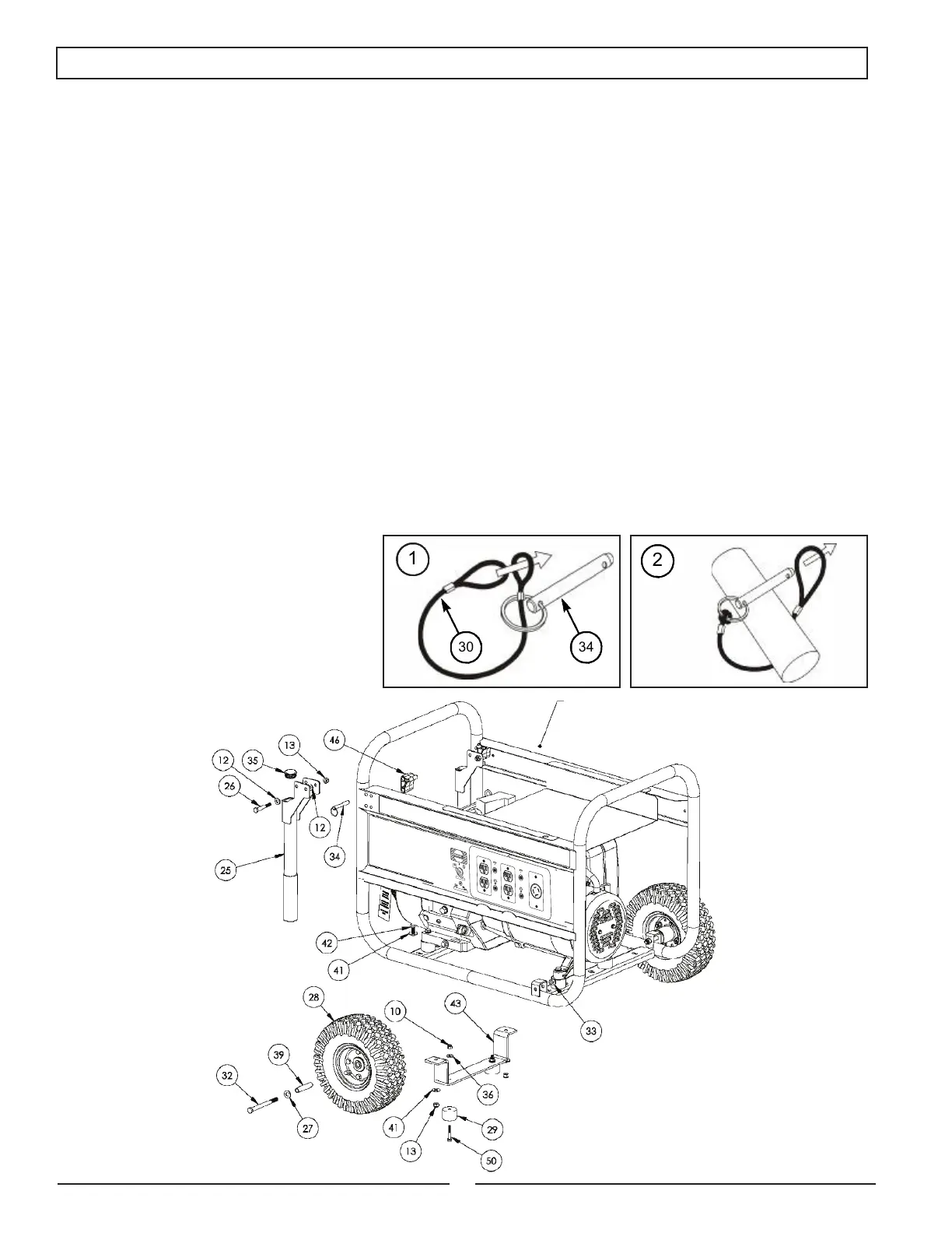 1. Block up end of generator opposite the fuel tank cap to install wheel kit.