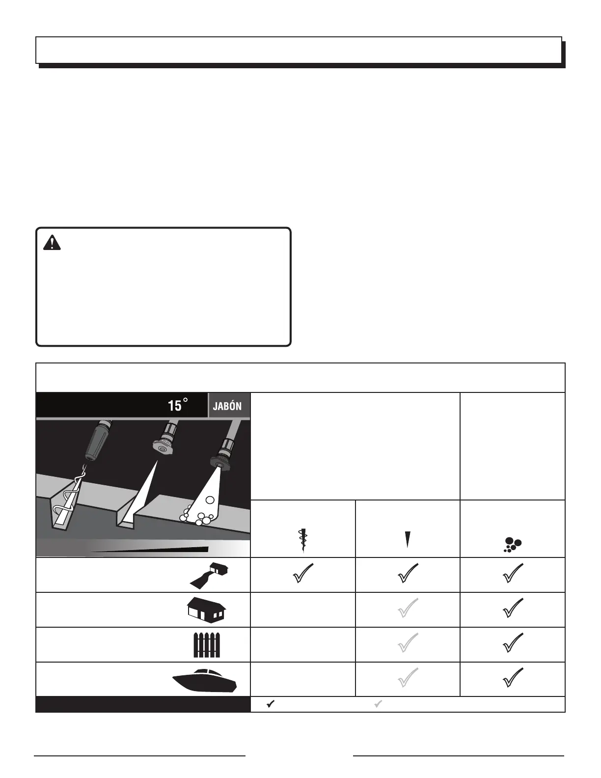 Boquilla recomendada Usar con cuidado en ciertas aplicaciones