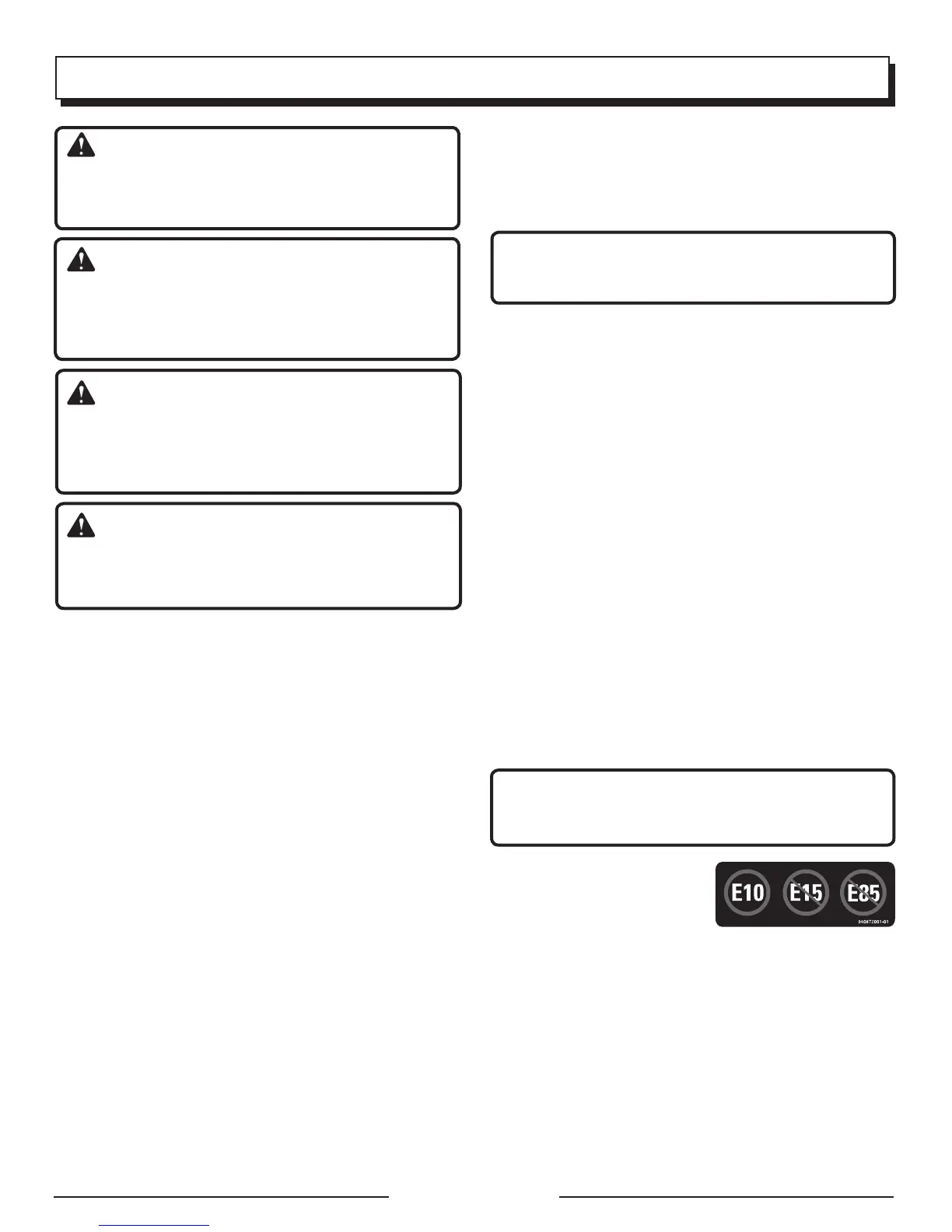 DO NOT USE E15 OR E85 FUEL