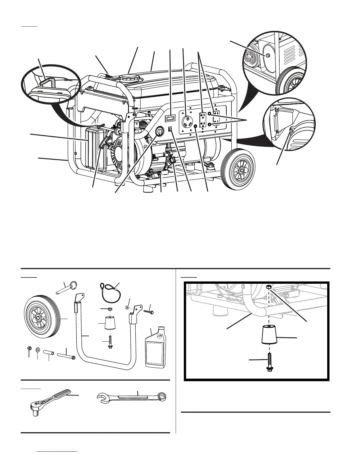 - Oil cap/dipstick (tapa de relleno de aceite/varilla medidora de aceite)