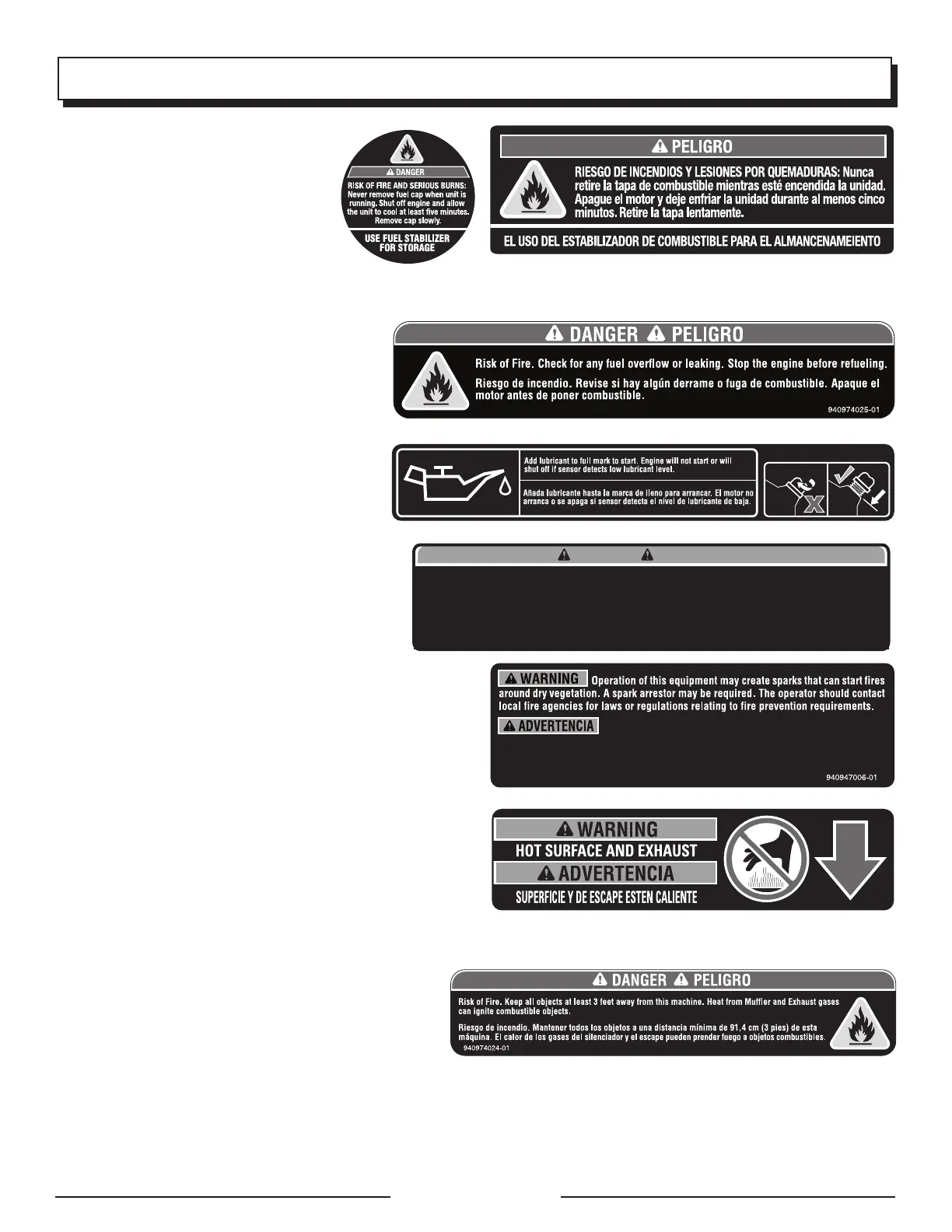calor generado por el silenciador y los gases de escape puede ser suficiente para causar quemaduras graves y/o prender