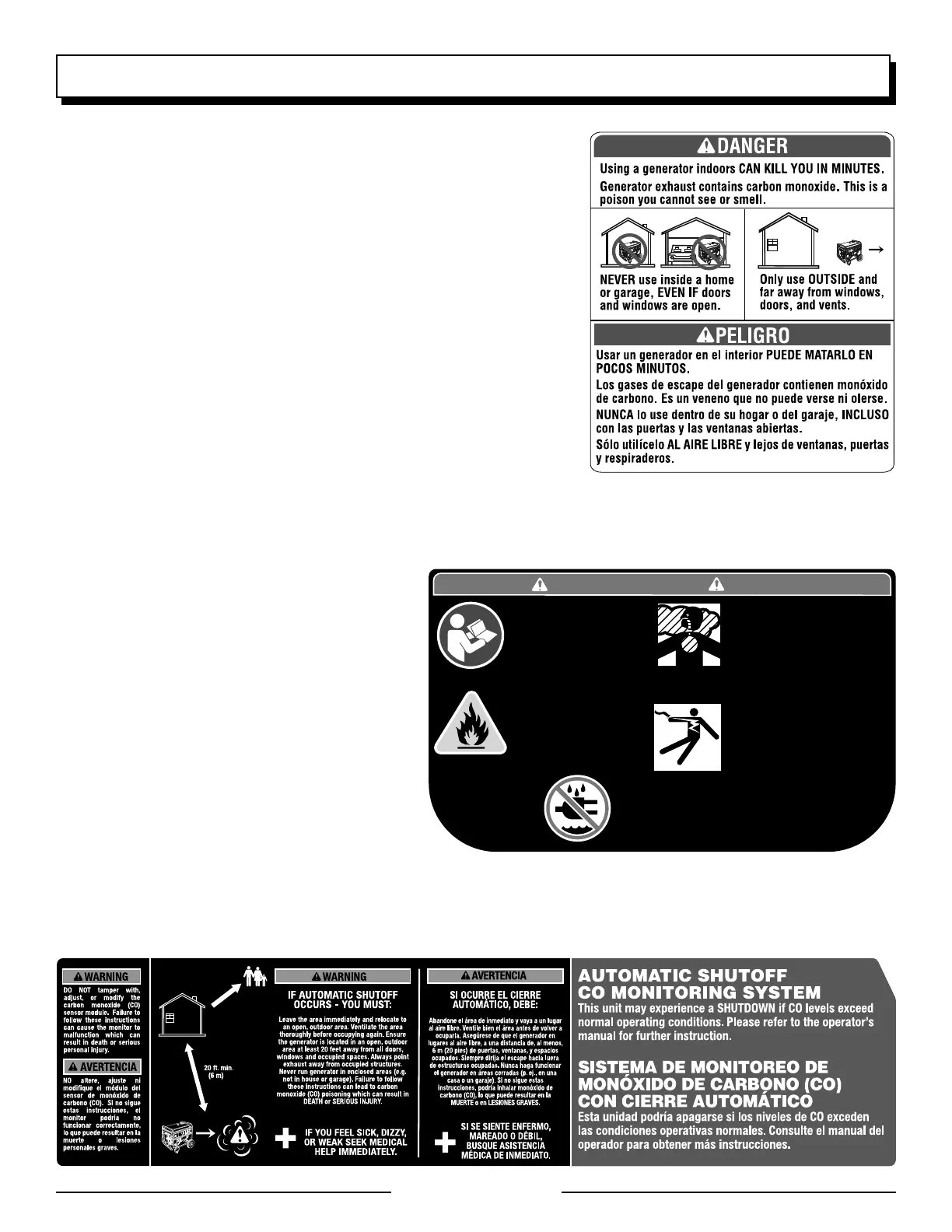 Los gases de escape del generador contienen monóxido de carbono. Es un veneno que no puede verse ni olerse.