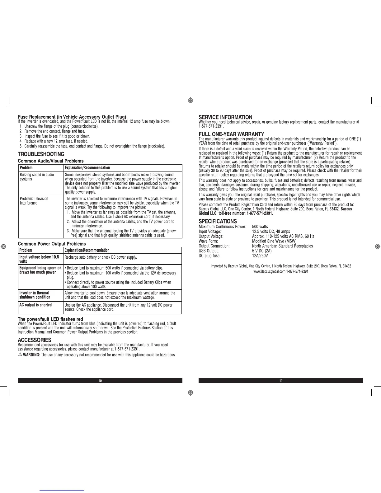 Black + Decker PI500P - Troubleshooting; Common Audio;Visual Problems; Common Power Output Problems; Service Information