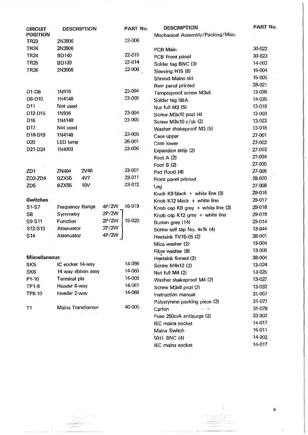 Mechanical Assembly/ Packing/Misc.