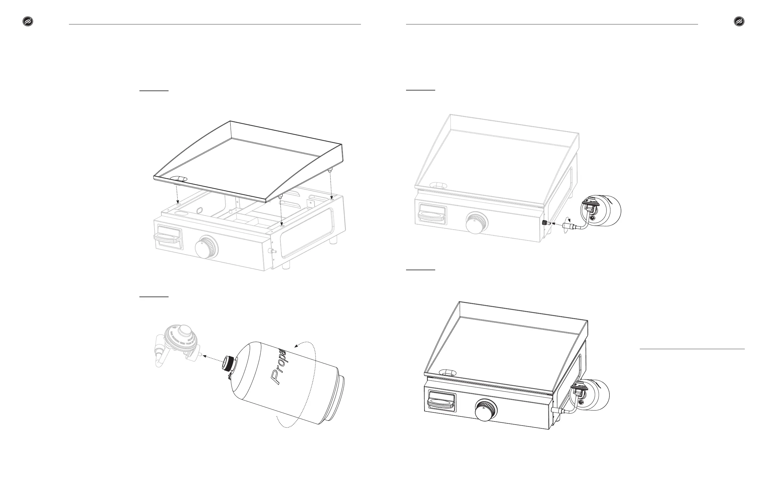 Insert the gas regulator and bottle into the gas line of the griddle.