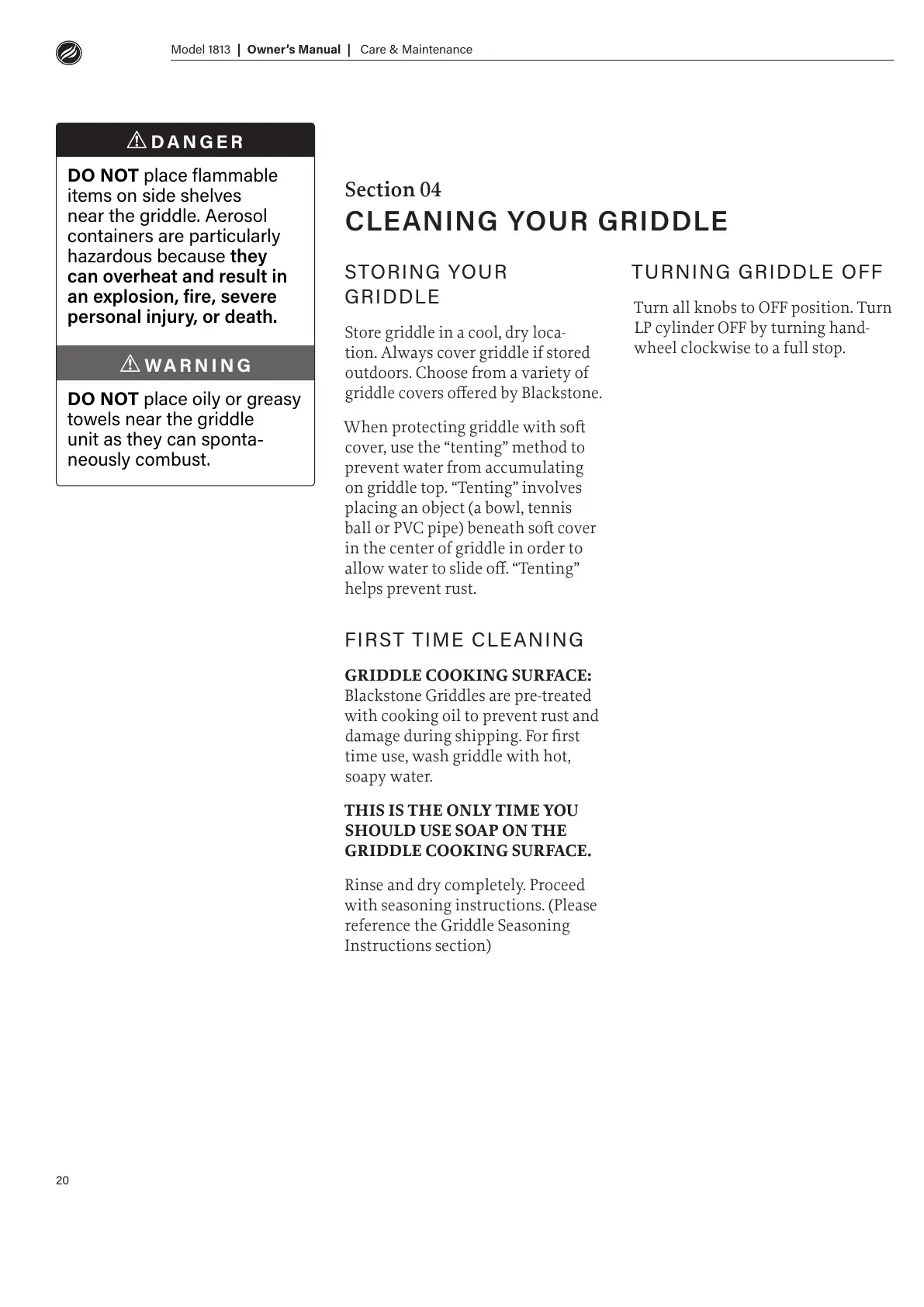 tion. Always cover griddle if stored