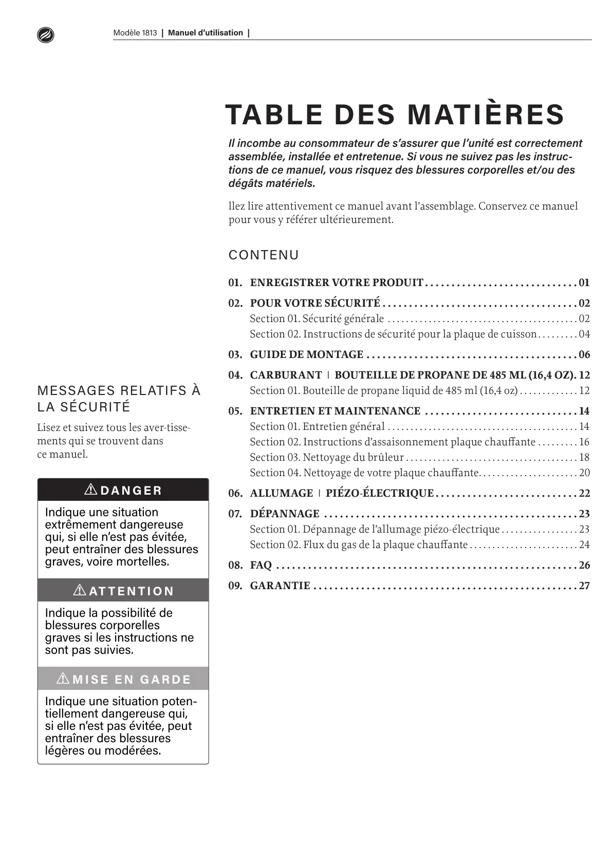 Section 01. Bouteille de propane liquid de 485 ml (16,4 oz) .............12