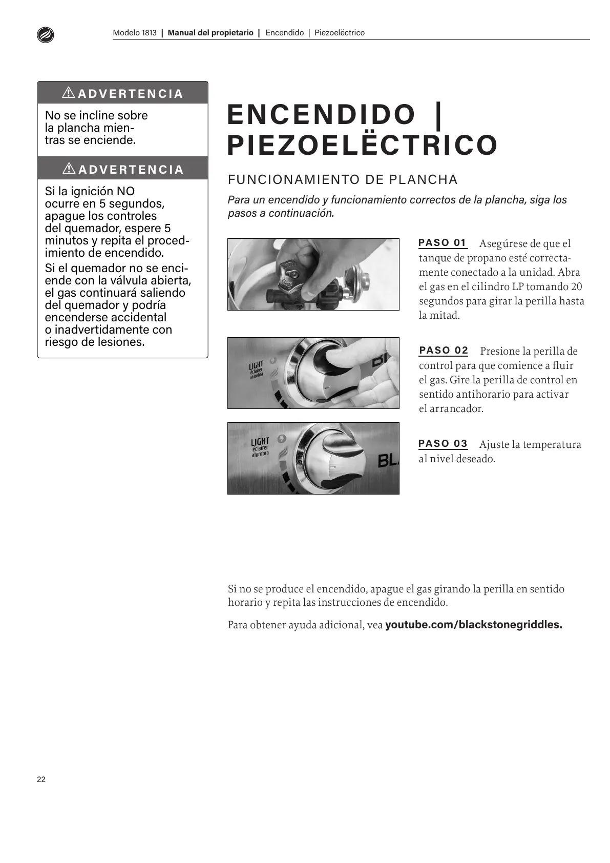 Para obtener ayuda adicional, vea youtube.com/blackstonegriddles.