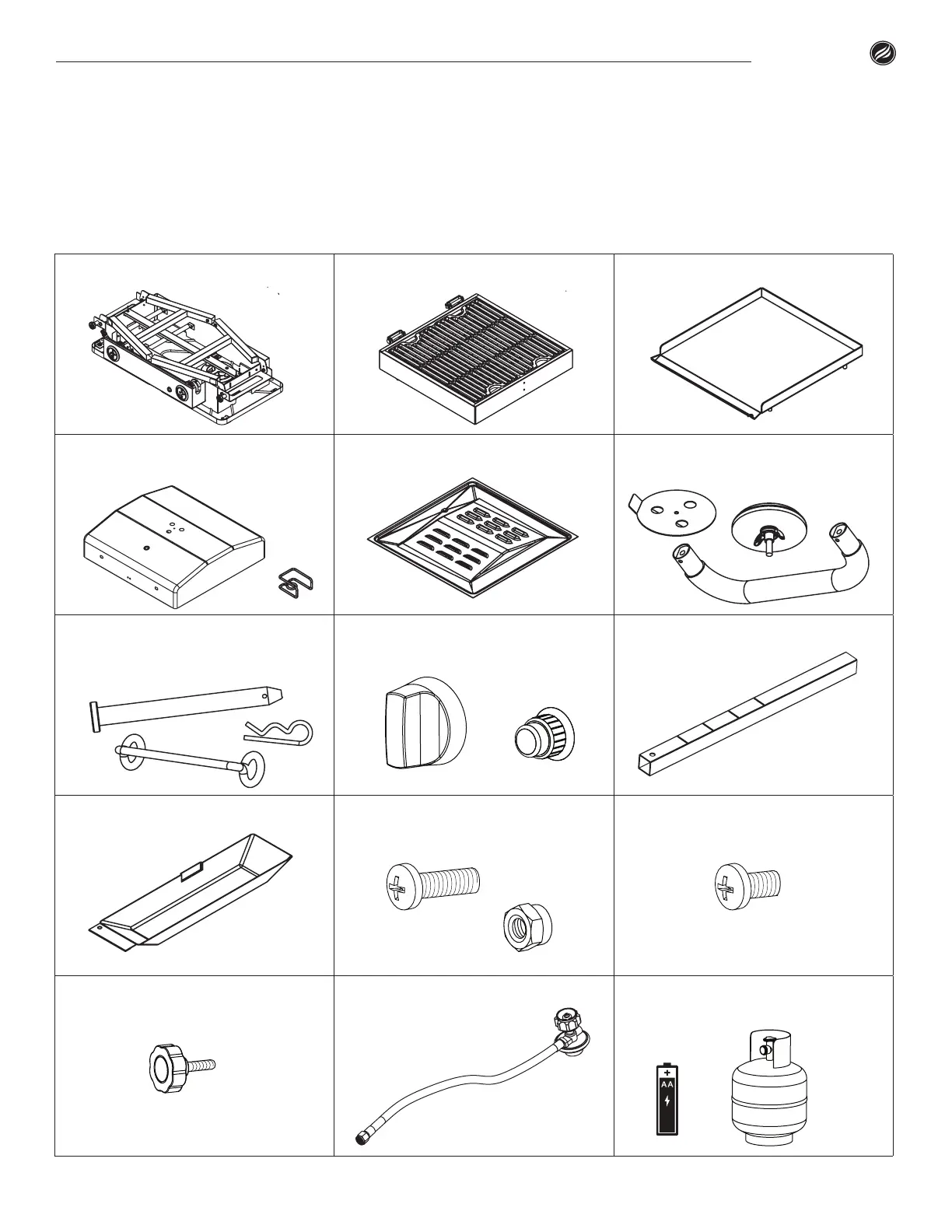 13. Small thumbscrew (4 pieces) 14. Regulator Hose (1 piece) NOT INCLUDED - 20Lb Propane