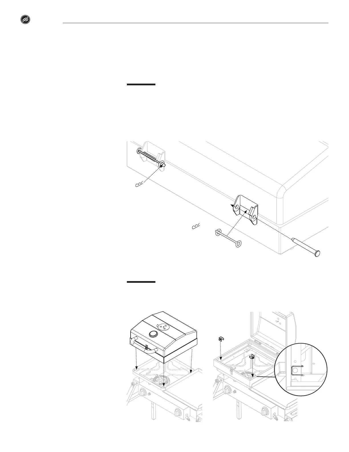 Place the assembled grill box onto the unit. Then, use two (2) grill box clips to