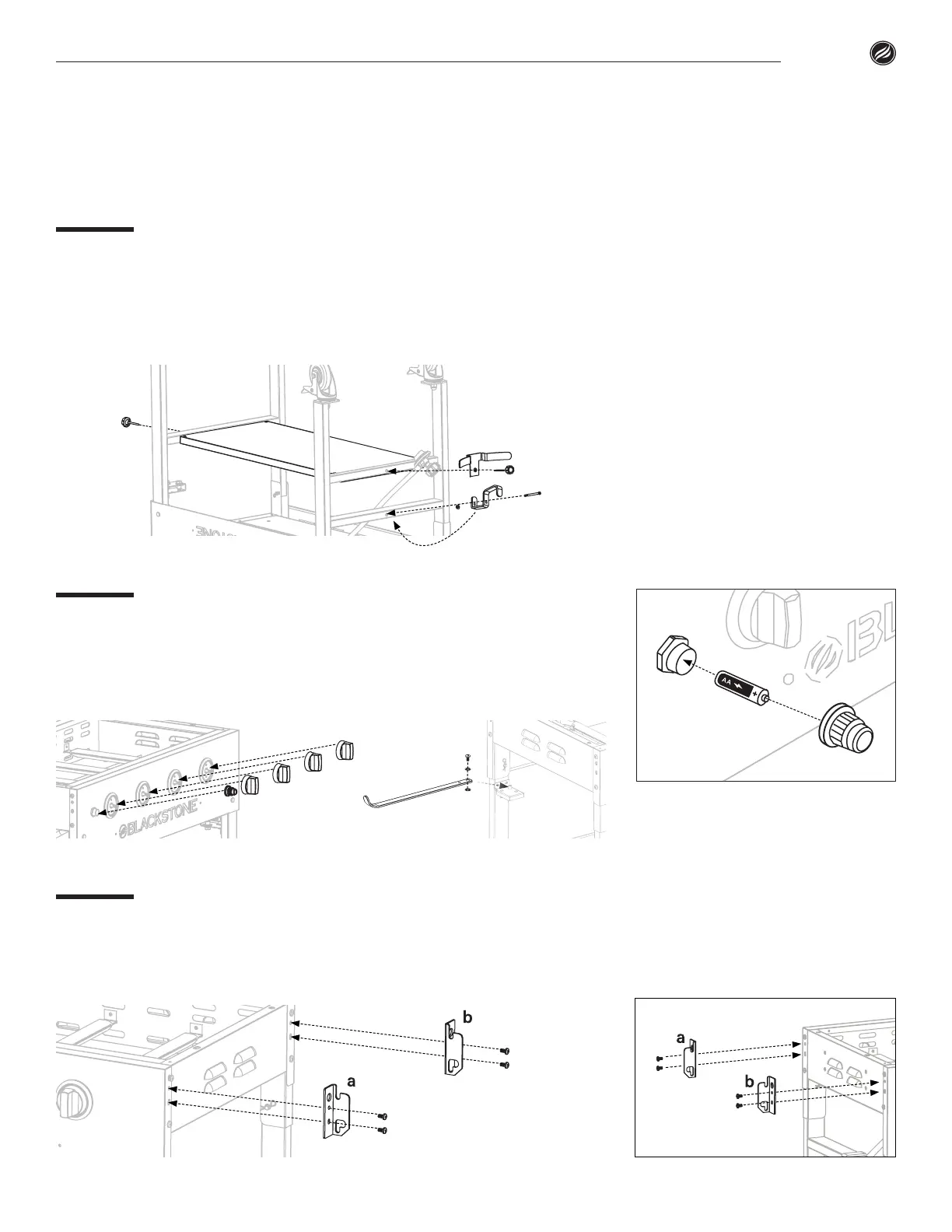 Attach two (2) side shelf brackets to the right side of the griddle unit with