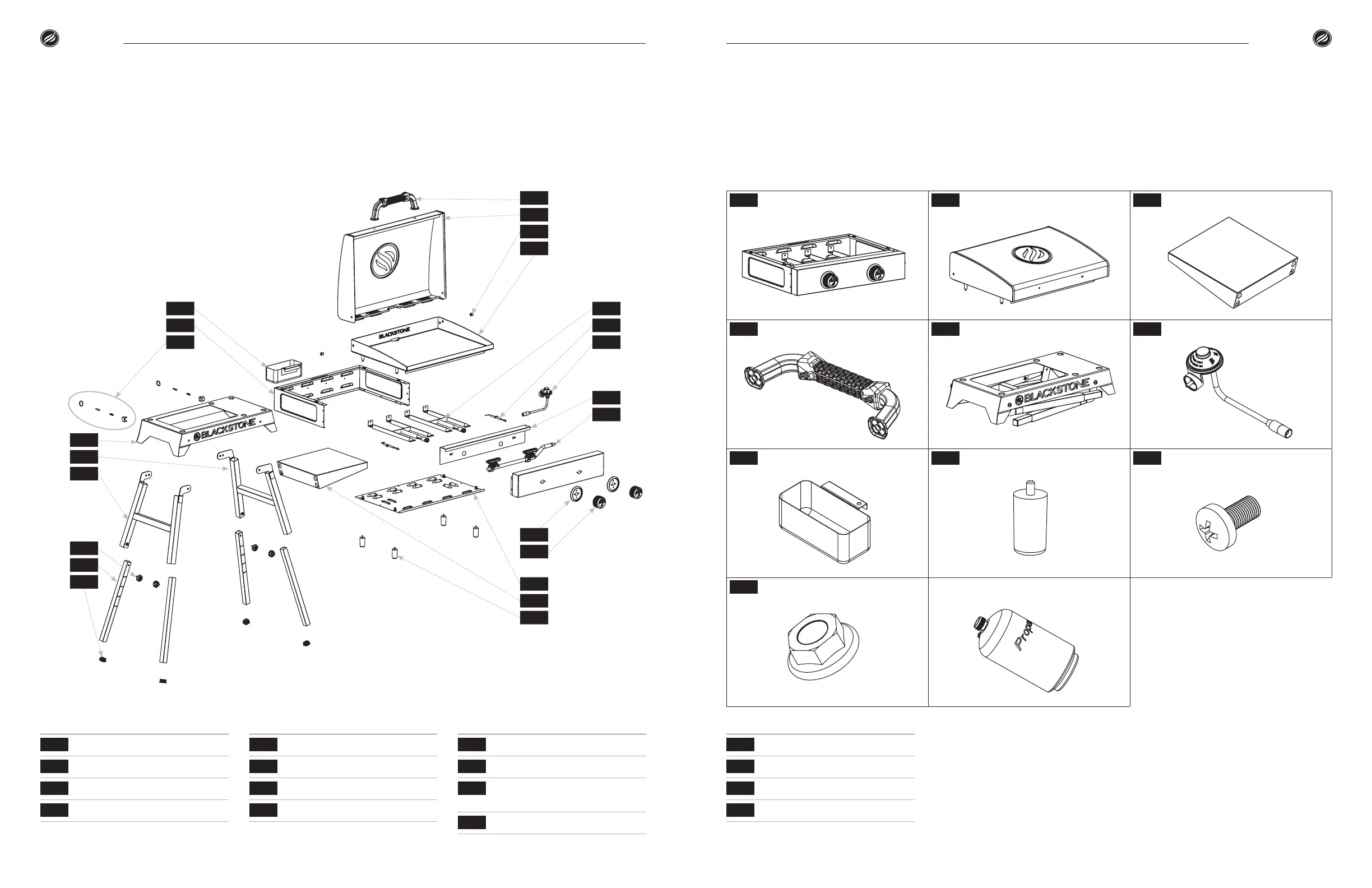 7 Grease cup (1 piece) 8 Griddle feet (4 pieces) 9 M6 Bolts (2 pieces)