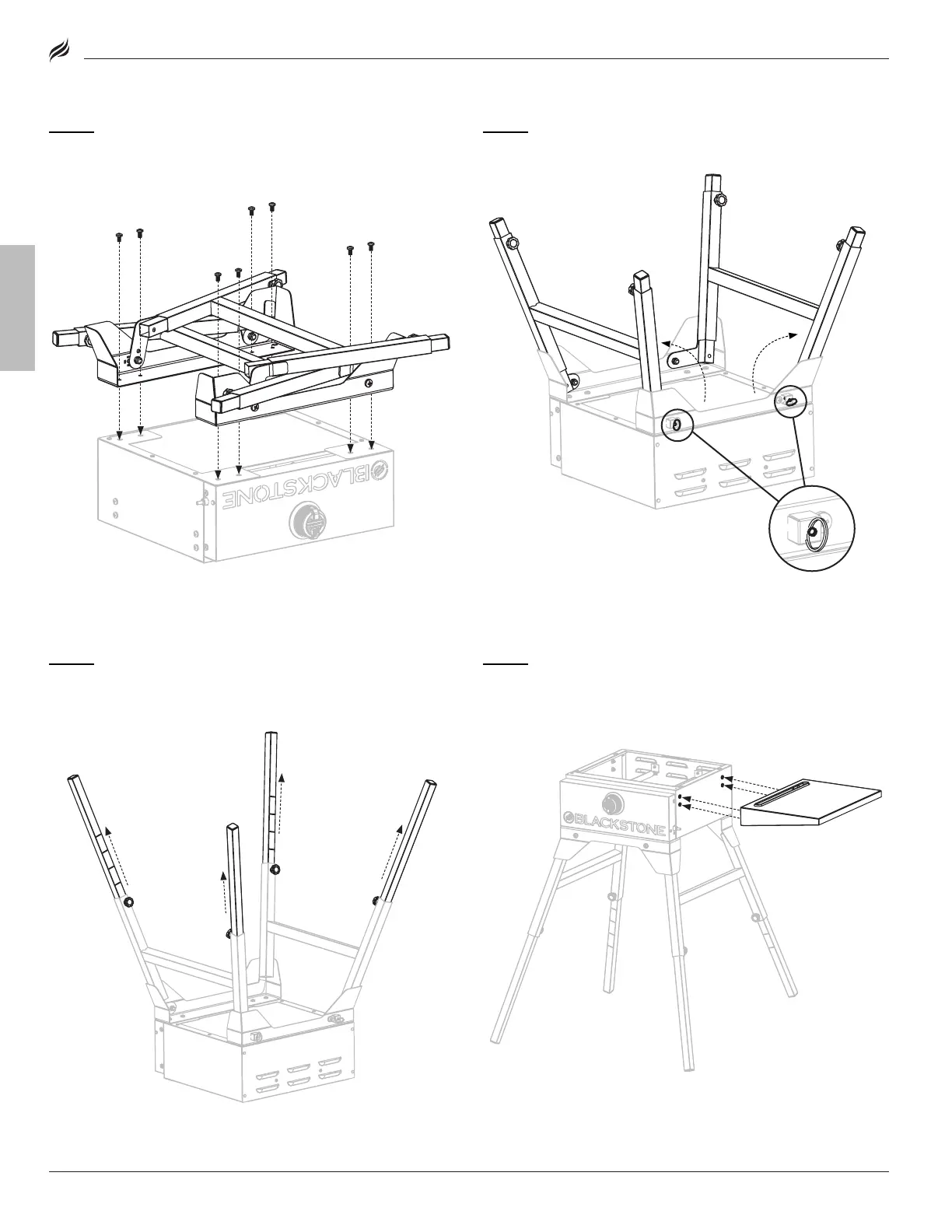 right side of the griddle body, then hang the side shelf on the bolts