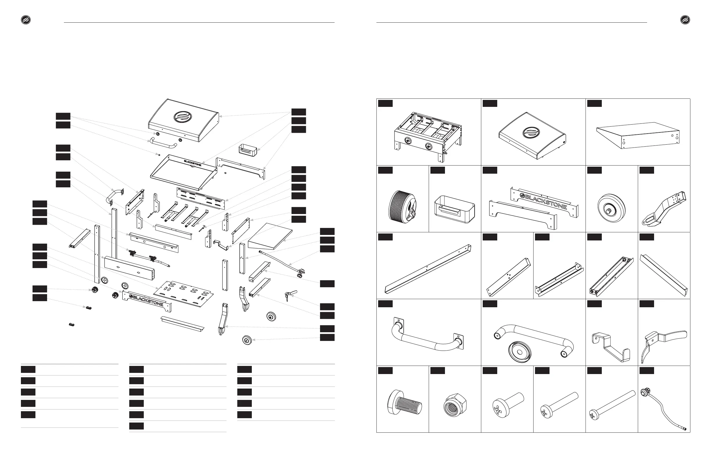 1 Corps (1 pièce) 2 Plaque et hotte (1 pièce) 3 Tablette latérale gauche (1 pièce)