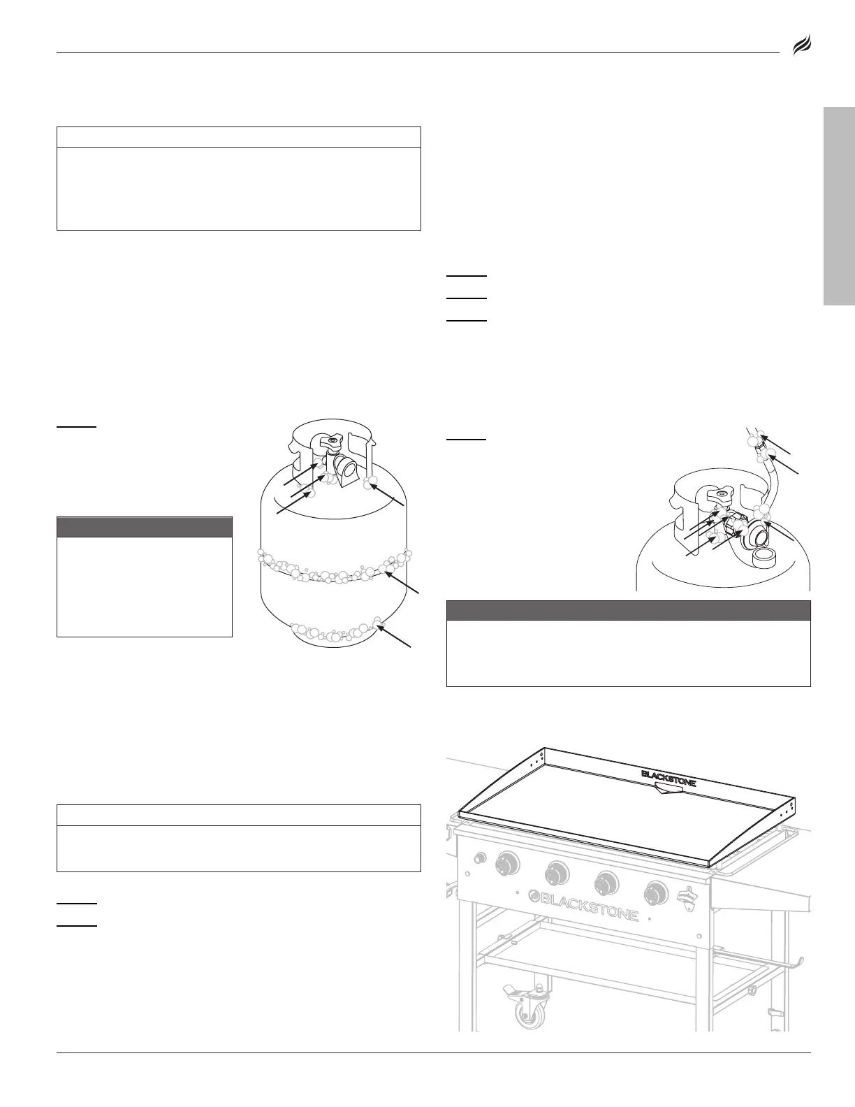 • Leak test new and exchanged LPG cylinders BEFORE connecting