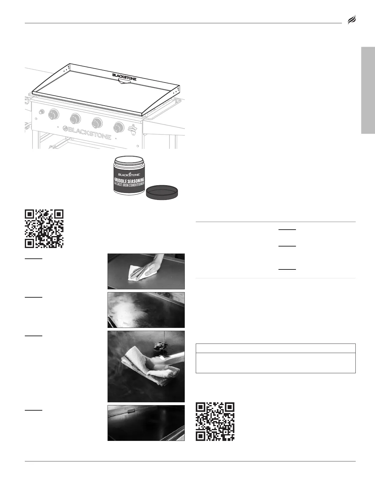 GRIDDLE SEASONING INSTRUCTIONS