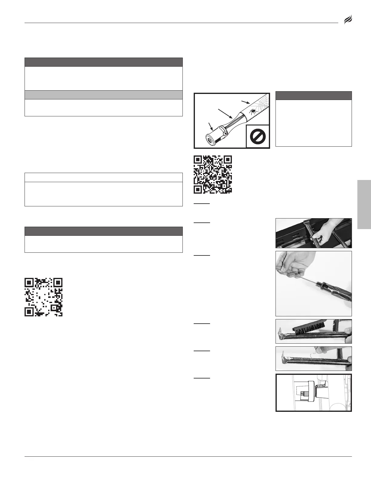 Las arañas y los insectos pueden anidar dentro y obstruir el quemador/tubo
