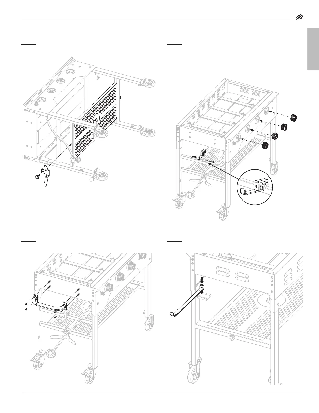 Install the four (4) control knobs [e.] by pushing them into place in