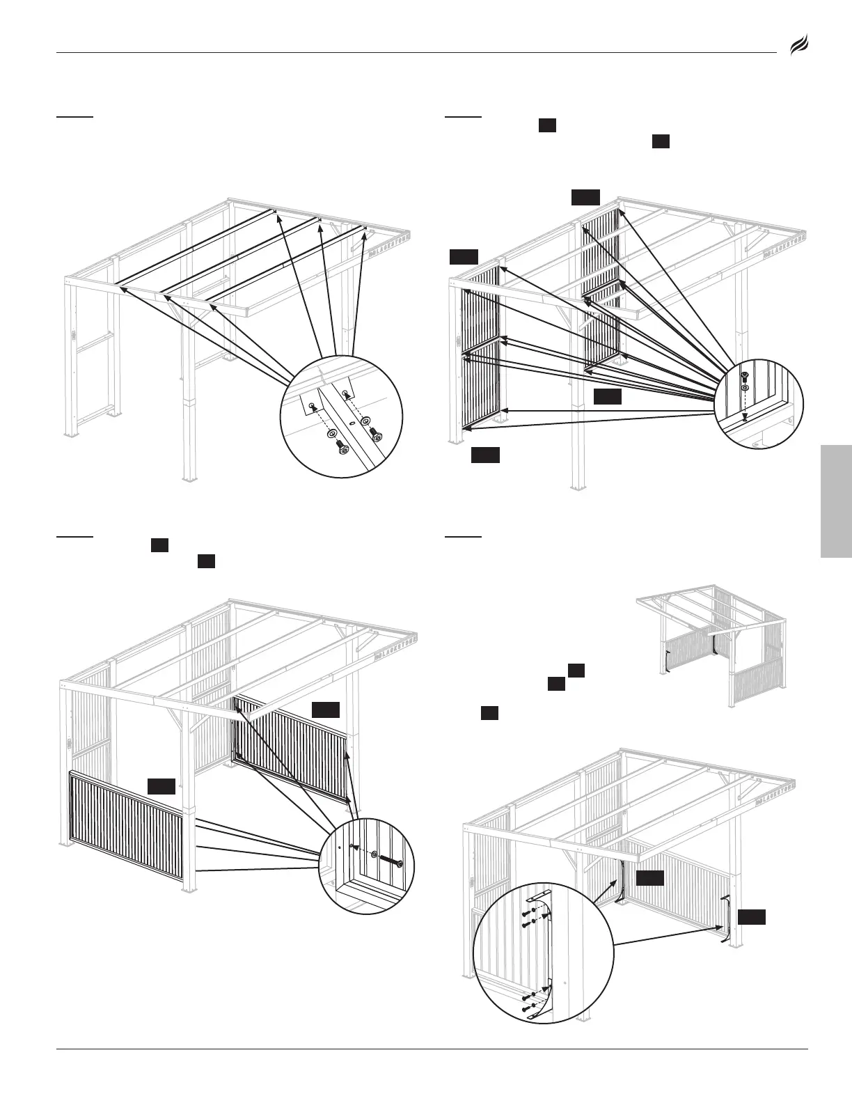 Repita con los otros tres (3) paneles laterales {J2} y conjuntos de viga trans-